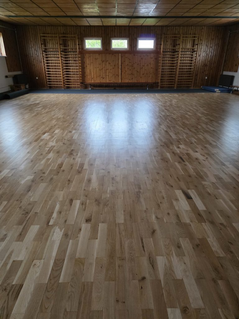 Es ist geschafft! Unsere Sport- und Mehrzweckhalle strahlt in neuem Licht. Nachdem der Zahn der Zeit an unserem Parkett genagt hatte, konnten wir pünktlich zum Frühjahr die umfassende Sanierung des Hallenbodens erfolgreich abschließen.